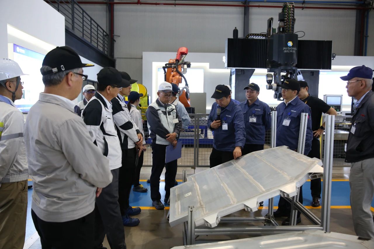 圖:瑞松科技向日本豐田一行介紹瑞松科技攪拌摩擦焊技術(shù)在新能源汽車制造的應(yīng)用