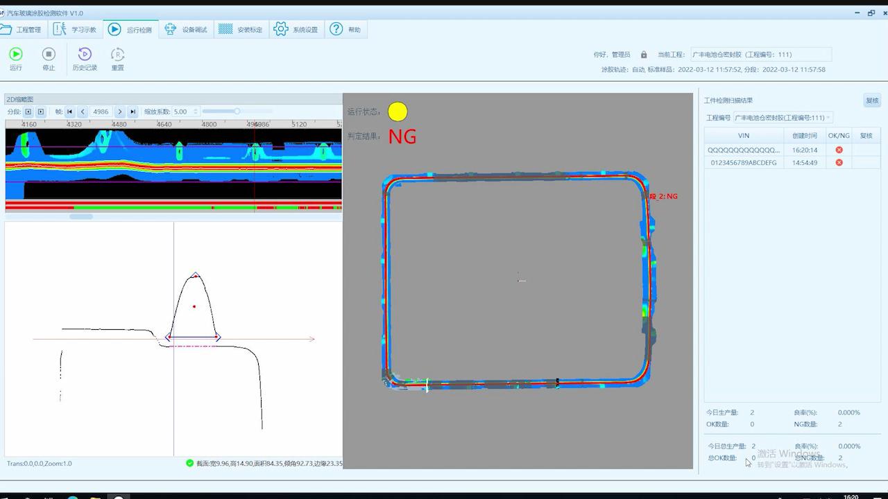 3D涂膠檢測系統(tǒng)是在2D涂膠檢測系統(tǒng)的功能上,增加了膠條高度、膠條截面積等的檢測,多適用于更高要求的涂膠品質(zhì)檢測,例如發(fā)動(dòng)機(jī)缸體三角膠檢測、汽車前后擋風(fēng)玻璃三角膠檢測、電池殼密封膠檢測等。